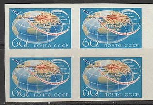 СССР 1958 год. Авиация. ТУ-104, квартблок (без перфорации)