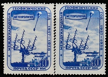 СССР 1958 год. Метеорология. Радиотеодолит "Малахит". Разновидность - разный фон, 2 марки (2090)