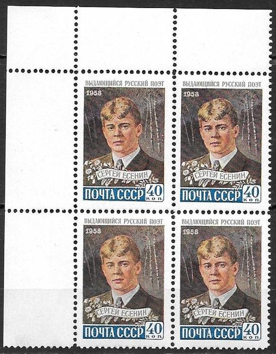 СССР 1958 год. С.А. Есенин, верхний левый квартблок