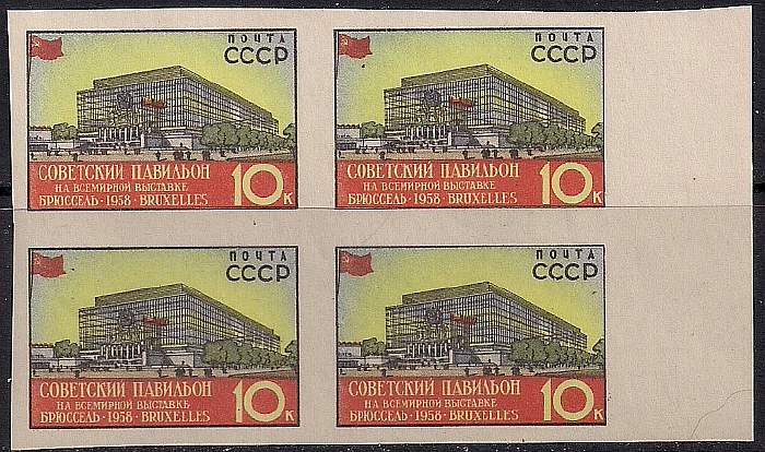 СССР 1958 год. Всемирная выставка в Брюсселе (ном. 10к). Квартблок