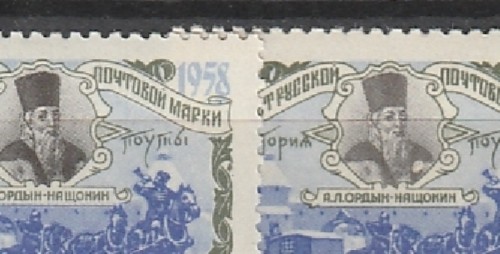 СССР 1958 г, А. Ордын-Нащекин, Белое Пятно на Бороде, Разная Бумага, 2 марки