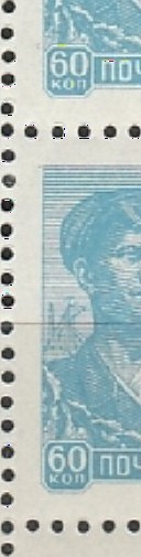 Разновидность. СССР 1958 г, Стандарт, 60 к. Голубая, Синяк под Глазом, Точка в Номинале, 2я марка, квартблок