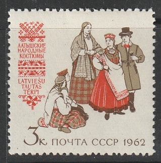 СССР 1962 год. Латышские народные костюмы, 1 марка.