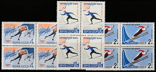 СССР 1962 год. Первенство мира по конькобежному спорту в Москве и по зимним видам спорта в Польше, 3 квартблока (2571, 2609) (К