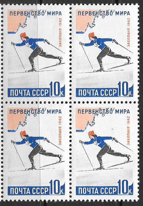 СССР 1962 год. Первенство мира по зимним видам спорта, квартблок. (10 к)