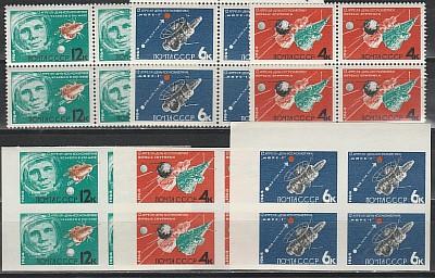 СССР 1964 год, День Космонавтики, полная серия 6 квартблоков