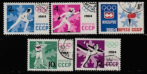 СССР 1964 год. Зимние Олимпийские игры в Инсбруке, 5 гашёных марок