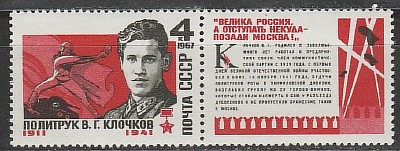 СССР 1967 год, Герой СССР В. Клочков, марка с купоном