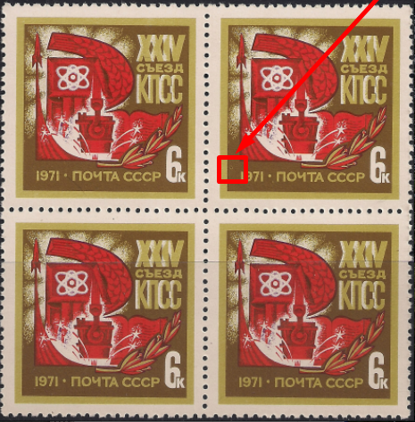 СССР 1971 год. 24-й съезд КПСС. Квартблок. Разновидность - пятно слева внизу