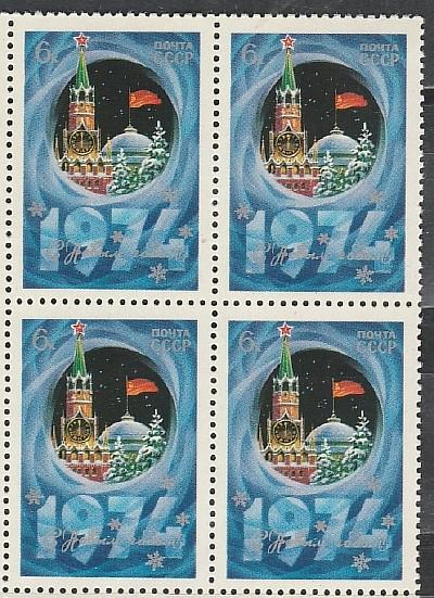 СССР 1973 год, С Новым 1974 Годом!, квартблок.