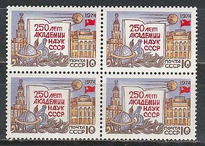 СССР 1974 год, 250 лет Академии Наук, квартблок. (космос)