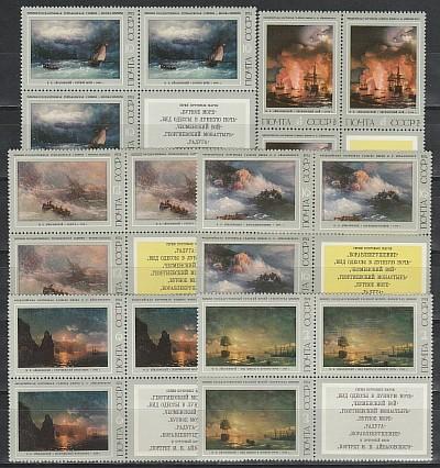 СССР 1974 год, Картины Айвазовского, 6 квартблоков с нижними правыми купонами.