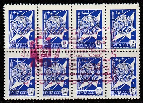 СССР 1977 год. Стандарт (ном. 12 к.). НДП: "Всероссийская филвыставка. День памяти А.М. Исаева - главного конструктора в области ракетных двигателей", 8 марок.