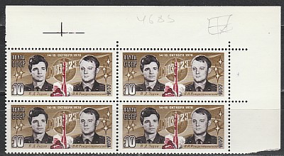 СССР 1977 г, Полет "Союз 23", Белая Точка под Левым Погоном, 4-я марка, квартблок