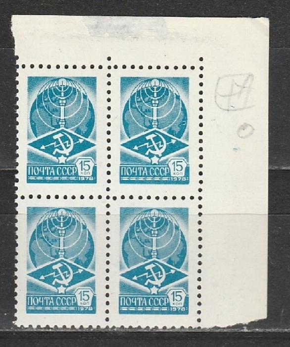 СССР 1978, Стандарт 15 к., Мел. Бум., Дополнительный Остров, 2-я марка, квартблок