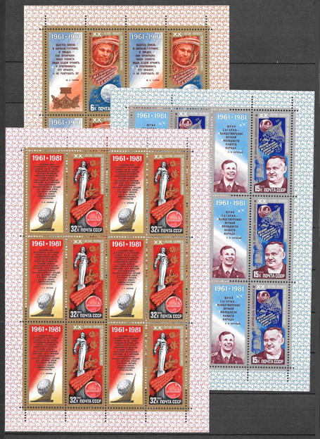 СССР 1981 г. 20 лет первого полета человека в космос, 3 малых листа