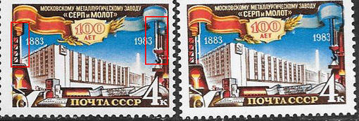 СССР 1983 г, 100 лет заводу "Серп и Молот", 2 марки, разновидность