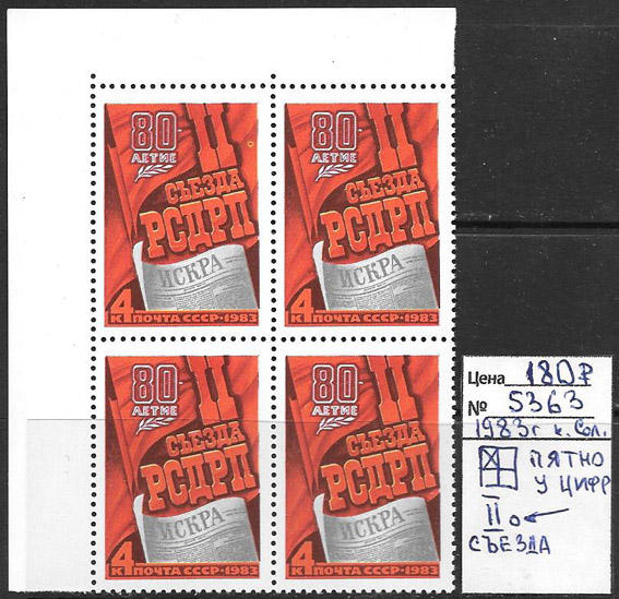 СССР 1983 г, 80 лет II съезда РСДРП, квартблок, разновидность