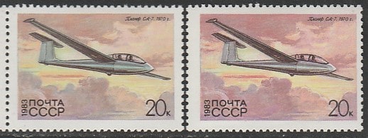 СССР 1983 год. история советского планеризма. СА-7, Разновидность - разный цвет (5302)