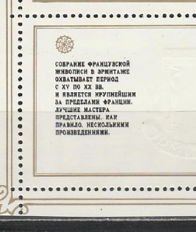 СССР 1984, Разновидность. Французская Живопись, Двойной Черный Текст на Купоне, квартблок с купоном