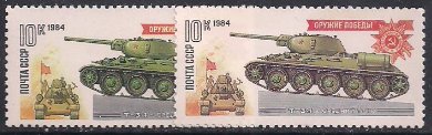 СССР 1984 год. Танк "Т-34" (5400). Разновидность - разный цвет