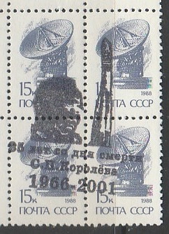 СССР 1988 год. Стандарт (ном. 15 к.). НДП: "35 лет со дня смерти С.П. Королёва, 1966-2001", квартблок (I)