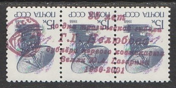 СССР 1988 год. Стандарт (ном. 15 к.). НДП: "35 лет со дня трагической гибели Г.Г. Нелюбова, дублёра первого космонавта Земли Ю.А. Гагарина 1966-2001", 3 марки