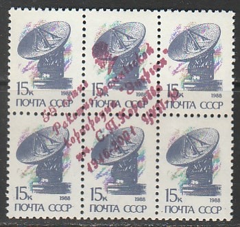 СССР 1988 год. Стандарт (ном. 15 к.). НДП: "55 лет РКК "Энергия" им. С.П. Королёва, 1946-2001", 6 марок.