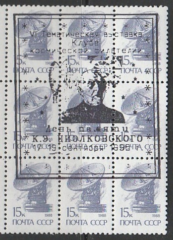 СССР 1988 год. Стандарт (ном. 15 к.) НДП: "VI Тематическая выставка Клуба космической филателии. День памяти К.Э. Циолковского, 17-19.09.1995 год", 9 марок.