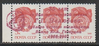 СССР 1988 год. Стандарт (ном. 5 к.). НДП: "35 лет со дня трагической гибели Г.Г. Нелюбова, дублёра первого космонавта Земли Ю.А. Гагарина 1966-2001", 3 марки.