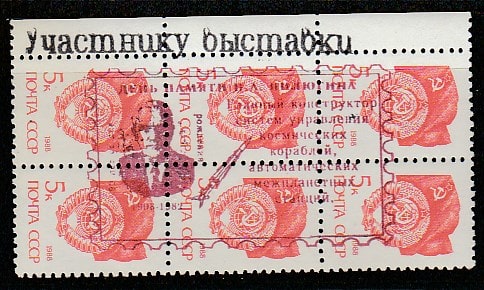 СССР 1988 год. Стандарт (ном. 5 к.). НДП: "День памяти Н.А. Пилюгина, главного конструктора систем управления КК и АМС", 6 марок.