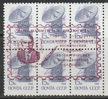 СССР 1989 год. Стандарт (ном. 15 к.). НДП: "День памяти Н.А. Пилюгина, главного конструктора систем управления КК и АМС", 6 марок.