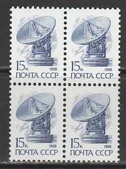 СССР 1989 год. Стандартный выпуск. Установка космической радиосвязи, квартблок (простая бумага)