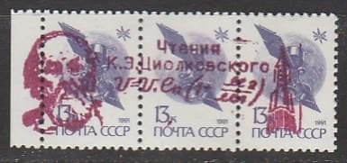 СССР 1991 год. Стандарт (ном. 13 к.) НДП: "Чтения К.Э. Циолковского", 3 марки (красная 6236)