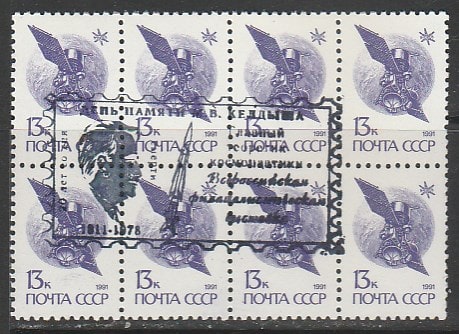 СССР 1991 год. Стандарт (ном. 13 к.), НДП: "Всероссийская филвыставка. День памяти академика М.В. Келдыша - главного теоретика космонавтики", 8 марок.