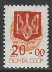 СССР 1991 год. Стандарт (ном. 2 к.). Надпечатка провизориев Украины, 1 марка.