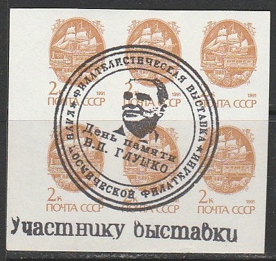 СССР 1991 год. Стандарт (ном. 2 к.). СГ: Клуб космической филателии. Филвыставка. "День памяти академика В.П. Глушко, учёного в области ракетно-космической техники", 6 марок.