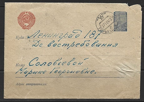 Стандартный конверт прошел почту 1954 год, марка 40 копеек