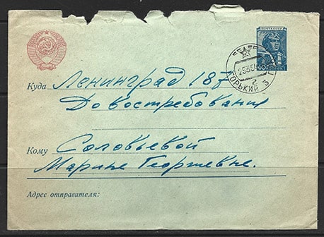 Стандартный конверт прошел почту 1954 год, марка № 1386 40 копеек