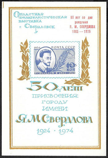 Сувенирный листок с НДП. 50 лет присвоения городу имени Я.М. Свердлова, 1974 г.