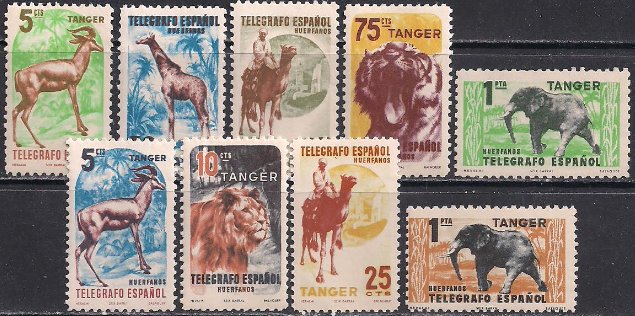 Танжер (Марокко) 1959 год. Фауна. Неполная серия (9 марок)