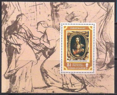 Теркс и Кайкос 1977 год. Живопись Рубенса. Гашеный блок