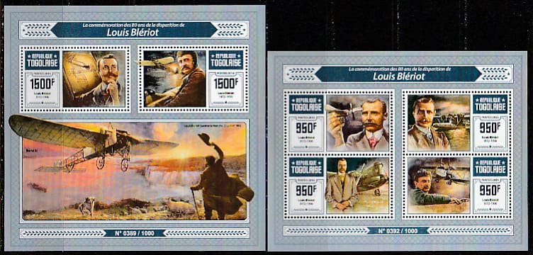 Того 2016 год. 80 лет со дня смерти одного из пионеров авиации Луи Блерио, малый лист + блок.