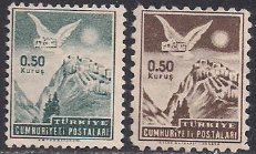 Турция 1952 год. Стандарт. Голубь над Анкарой. 2 марки (наклейка)
