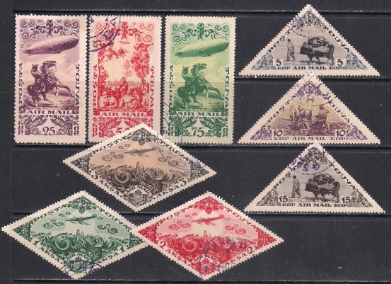 Тува 1936 год. Воздушный транспорт. 9 гашеных марок