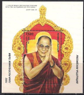 Тува 1995 год. Далай-лама XIV (Нгагванг Ловзанг Тэнцзин Гьямцхо). Блок