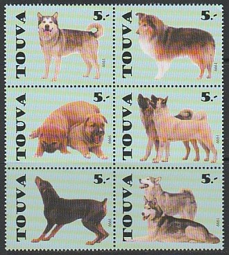 Тува 1999 год. Собаки, 6 марок (н Сувенирный выпуск.