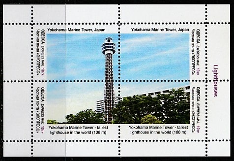 Украина (Одесса) Маяк "Марин-тауэр" в Иокогаме, квартблок марок экспресс-доставки.