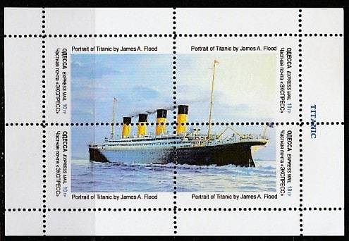 Украина (Одесса) "Титаник" на картине Джеймса Флада, квартблок марок экспресс-доставки.