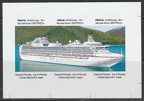 Украина (Умань) Круизное судно "Бриллиантовая принцесса", 3 б/зубц. марки экспресс-доставки.